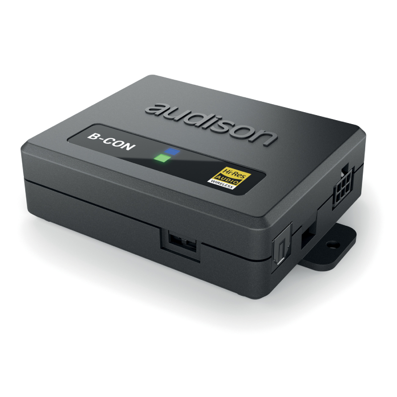 The Audison B-CON is the only Bluetooth 5.0® receiver designed for automotive use that has obtained the “Hi-Res audio wireless” certification from JAS (Japan Audio Society). B-CON is the ideal choice for streaming audio from a Hi-Res player (FIIO, Sony Walkman…) and from the latest generation Android/Apple mobile devices, fully supporting the car’s Hands-Free Bluetooth profile.