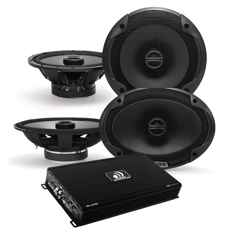 The BLADE BP Series Amplifiers are designed with our “Live, Loud and Play Hard” motto. All amplifiers have built-in OEM line converters with RCA inputs that can take a high level speaker signal at up to 9 Volts directly in. By sensing the DC off set of a factory radio it can activate the ATO (Auto Turn On) feature and convert the 12V turn on into a 12V switched out. Blade “BP” are Class AB designed with a minimum per channel impedance operation of 2 Ohm with the exception of the BP2000.1, BP1200.1 which are Class “D” and can play down to 1 Ohm minimum. The monster BP4000 & BP6000 are full range Digital and 2 OHM stable. All Blade “BP” amps use Mil Spec PCBs, SMD parts, 5 way protection, full MOSFET high grade switching devices and all comply with the “World Wide Standards”, “ROHS”, “E-Mark” and are CTA2006 Compliant. This ensures that no competition can stand up to the BLADE BP when it comes to features, performance and value.