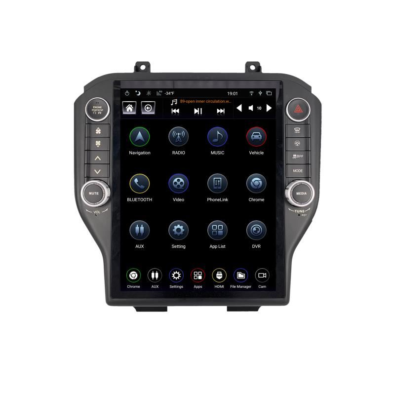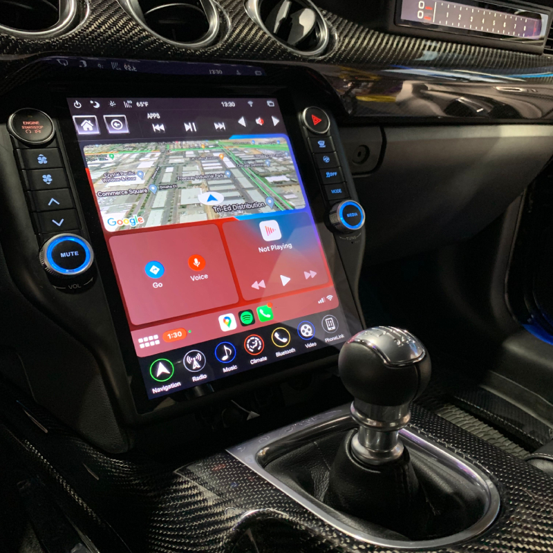 The Linkswell GEN4 T-Style multimedia center replaces the factory display screen and climate control center in select Ford Mustangs, enhancing the dash with a 12.1-inch, multi-touch panel encased in a factory-match bezel. The climate controls are recreated on-screen, allowing the driver to access all related features. The Android™ 8.1 powered multimedia center is optimized to display relevant information with minimal distraction.
