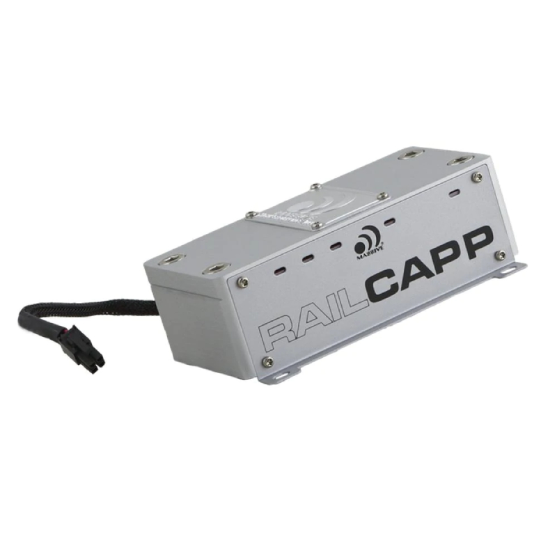 The Massive Audio “Rail CAP P” or "RCP" was designed for the high powered the PRIMO SERIES Amplifiers. With Massive Audio's " Direct Plug & Perform" technology this powerful 4 Farad Capacitor simply plugs directly into a dedicated docking port found on the end cap of the PRIMO SERIES.