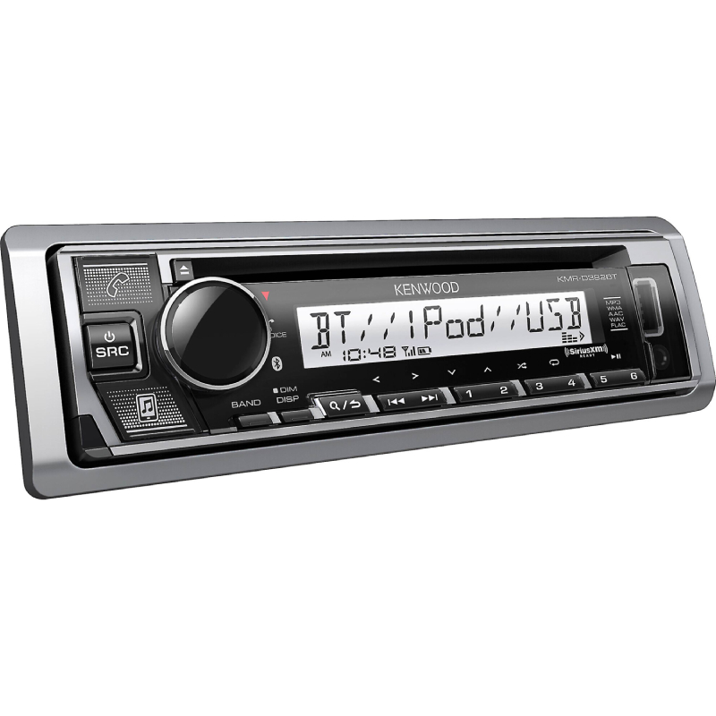 Enjoy your tunes outside with Kenwood's KMR-D382BT marine CD receiver and KFC-1633MRW marine speakers mounted in your favorite transport. The package's 6-1/2" speakers feature a rugged polypropylene woofer with a water-resistant design, while the balanced-dome tweeter is built into the solid white UV-resistant grille for an extra measure of splash protection and durability.