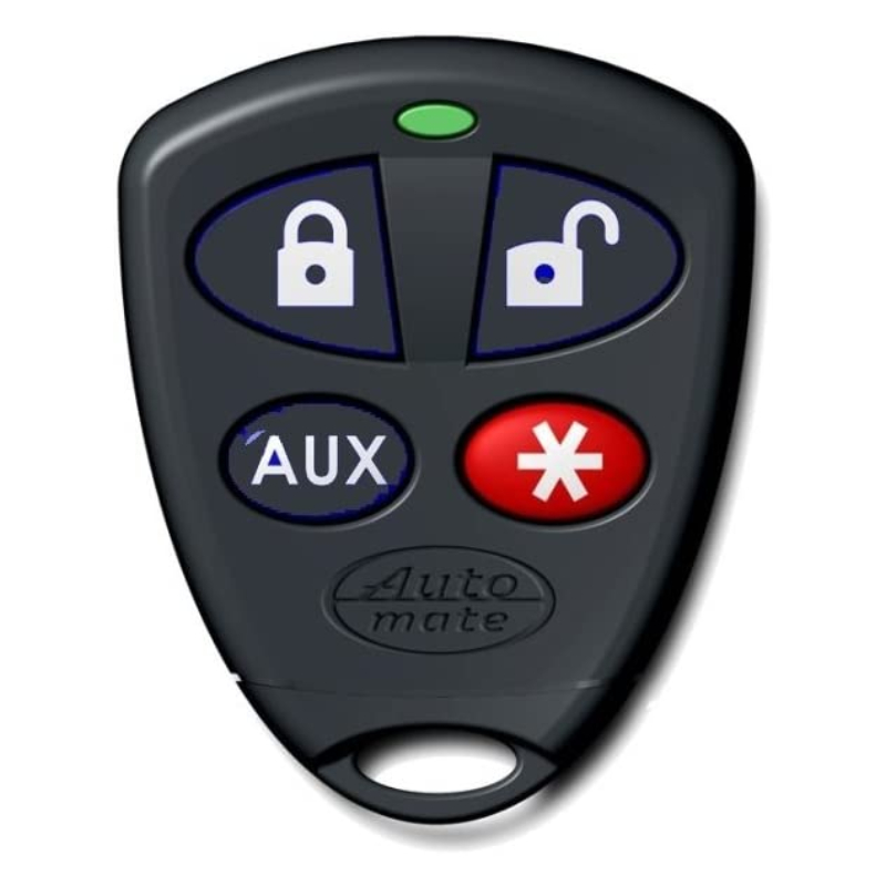 - 433-434 MHz remote with 4 buttons and a green LED.