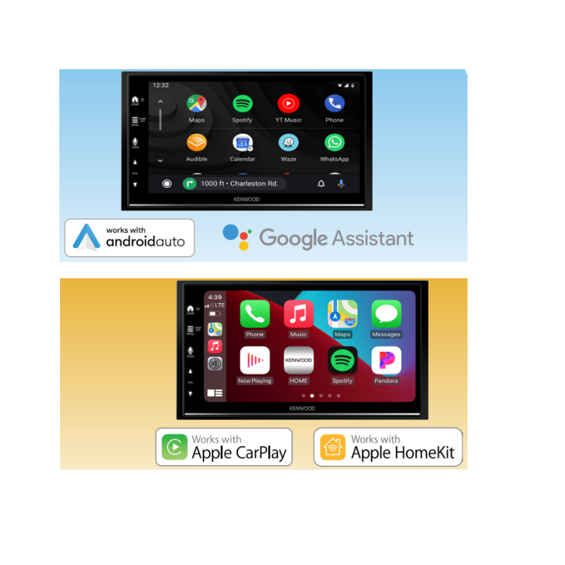 The Kenwood DMX7709S multimedia receiver is compatible with Android Auto and Apple CarPLay, so by using voice commands and with the help of Google Assistant and Siri, you can comfortably ask for directions, take and make phone calls, read and send text messages, listen to voicemails, and play music without having to take your eyes off the road.