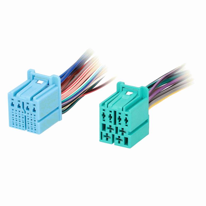 On one side, the wiring harness is color-coded with wires that you'll connect or solder into the aftermarket radio/receiver. The other side has a vehicle-specific adapter that connects directly into the original radio connectors for a quicker installation without having to cut each of the wires.
