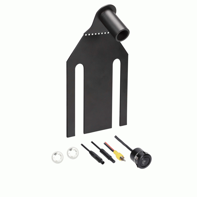 Mount a backup camera to the rear spare tire with this bracket designed for the Jeep Wrangler. The adjustable bracket mounts to the factory studs of the spare wheel. The iBeam Flush Mount Backup Camera with metal housing is included in the kit.