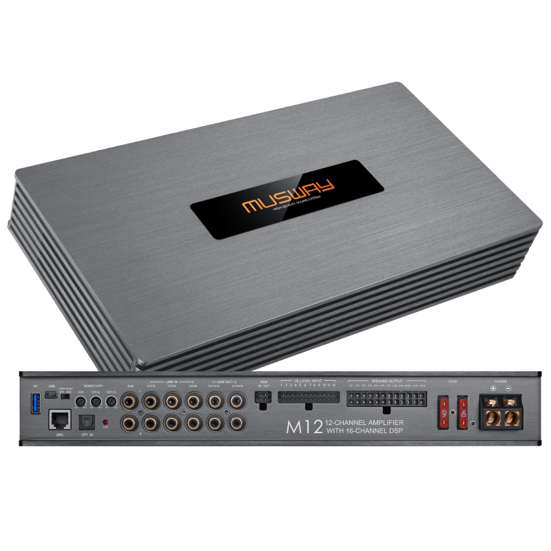 Musway M12 12-Channel 120W RMS x 12 at 2 Ohm, Class-D Full Range Car Amplifier with 16-Channel Digital Sound Processor Output - German Engineered