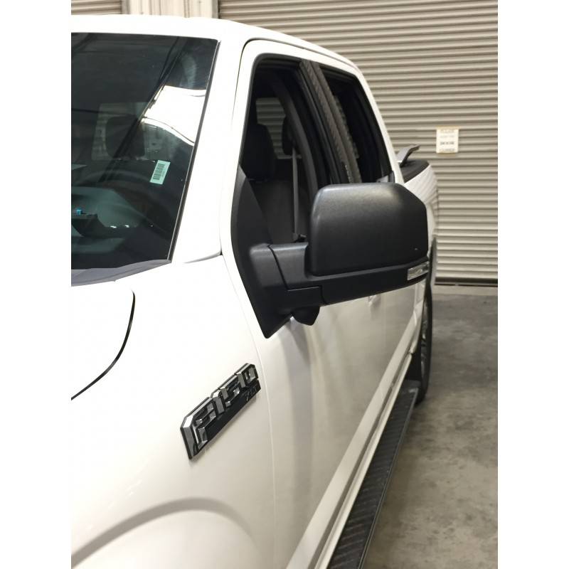 For 2015-2018 Ford F-150 with monitors with multiple video inputs and switching capability. The kit includes proprietary, factory-matched side mirror caps with built-in blind spot elimination cameras.
