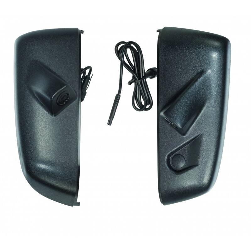 For 2015-2019 GM Heavy Duty Silverado/Sierra vehicles with monitors with multiple video inputs and switching capability. The kit includes proprietary, factory-matched side mirror caps with built-in blind spot elimination cameras.