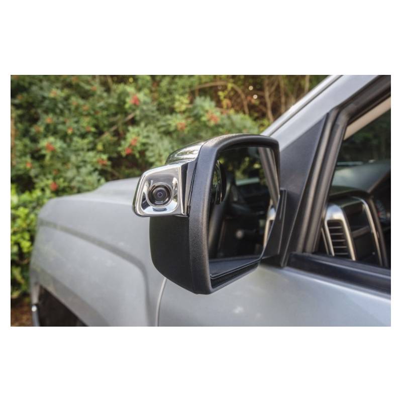 For 2014-2018 GM Light Duty Silverado/Sierra vehicles with monitors with multiple video inputs and switching capability. The kit includes proprietary, factory-matched side mirror caps with built-in blind spot elimination cameras.
