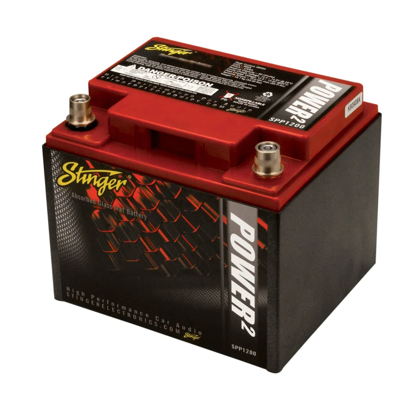 The SPP1200 features a sealed absorbed glass mat (AGM) design and is perfect for 2400 watt car audio sound systems. It is the monster of Stingers' batteries and can be used as a replacement for your vehicle's standard, or additional battery to provide the extra power needed for a high-performance aftermarket system. Its leak-proof design and removable brass battery posts allow this power cell to fit in most factory battery locations with no hazardous leaks. Stinger's SPP1200 Power Cell puts out 2600 cranking amps and is good for over 400 full discharge cycles. This battery will store energy so you don't need a capacitor for your system.