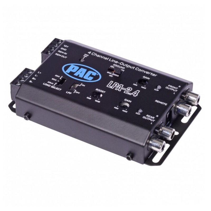 Turn your stock stereo into a powerhouse with the PAC LPA-2.4 LocPro Advanced Line Output Converter. Whether you're adding a subwoofer for booming bass or upgrading your entire sound system, this smart little device makes it easy to connect aftermarket amps without disrupting your factory setup. Designed to work with almost any vehicle — even those with premium amplified systems — the LPA-2.4 delivers clean, adjustable audio signals and advanced tuning options, all while preserving your car’s original look and feel. Plug in, power up, and experience a whole new level of sound.