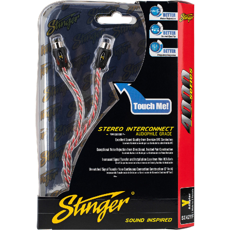 The Stinger SI42YF is the 2-Females to 1-Male Y-Adapter version in this series. Stinger Electronics 4000 Series RCA Interconnect Cables were made with an audiophile-grade design that enhances sound quality, provides incredible noise rejection, and offers simple installation. Each cable features C3 Technology (Continuous Connection Construction) which provides unmatched signal transfer and improved frequency response.