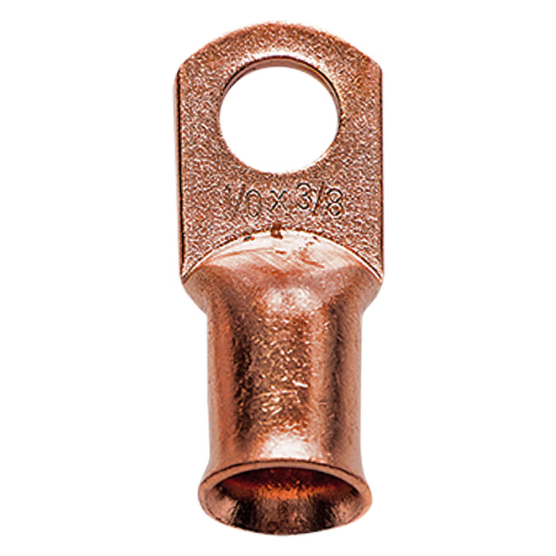 The PAC C10GARTJ 1/0GA Copper 3/8" Uninsulated Ring Terminal is built for solid, dependable performance. Made from high-quality copper, it offers excellent conductivity and a secure fit for your power or ground wire. Whether you're working on a car audio system or other electrical projects, this 5-pack gives you the quality and value you need to get the job done right.