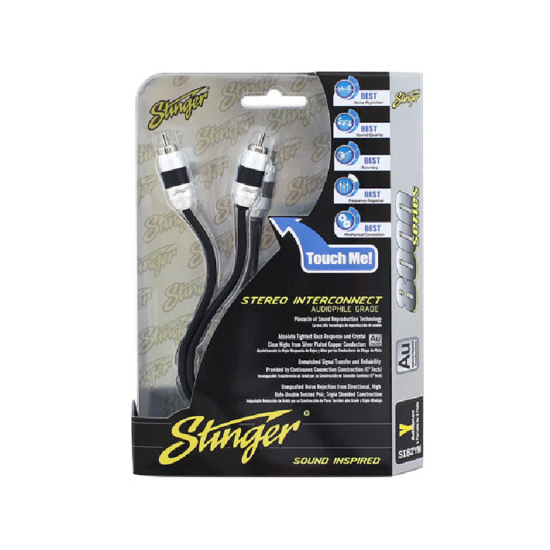 The 2-Males to 1-Female Y-Adapter version of this series, the Stinger SI82YM, has three conductors per channel. Superior signal transfer is made possible by Continuous Connection Construction (C3 Tech), which also features silver-plated copper conductors for tight bass response and crystalline highs. Installation is made simple by the channel identifiers, bendable black mesh protective jacket, and locking split-tip connectors. The brand-new RCA cables from Stinger are durable and inspired by music.