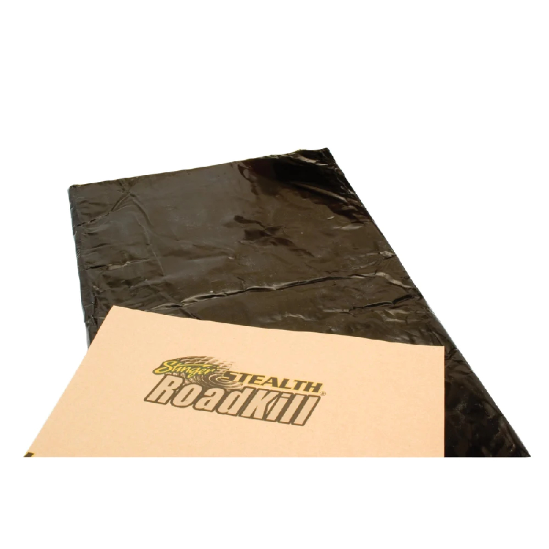 Enhance your speaker's output and eliminate panel distortion with RoadKill Stealth's speaker kit. Our Stealth material eliminates unwanted sound, without adding bulk, it's ultra-lightweight design delivers extreme sound damping performance through a black aluminum layer at 4 mils with a lightweight butyl layer.