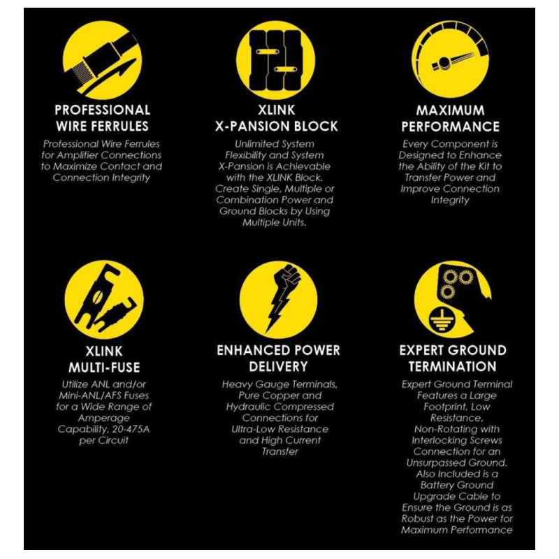 • XLink X-Pansion Block: Unleashes maximum performance and flexibility by transforming from an inline fuse holder to an expandable power, ground, or power/ground distribution block; accepts 0, 4, or 8GA input/outputs and supports ANL or MIDI/AFS fuses.