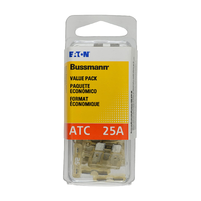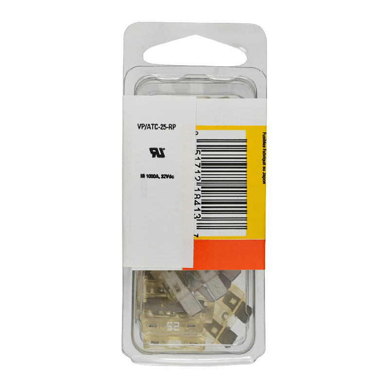 25 Amp Bussmann ATC Blade Fuse (Clear), 25 Pack