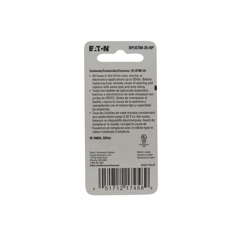 25 Amp Bussmann ATM Mini Blade Fuse (Clear)