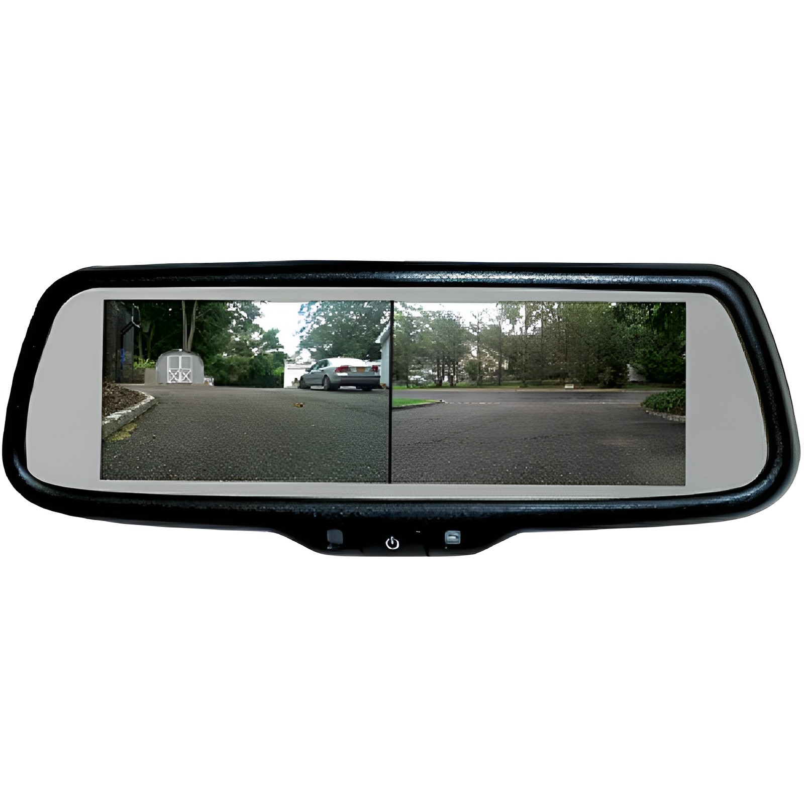 The RVM740 7.3" wide-screen features auto dimming and powerful 1000 cd/m backlighting as well as on-screen guidelines that can be adjusted to enhance parking precision. This replacement rear-view mirror also features optional split-screen mode that can accept up to two cameras and show both at once. The RVM740 includes remote control, multiple standard domestic mounts, Honda mounts and Hyundai/Kia mounts as well as being PAL + NTCS compatible.