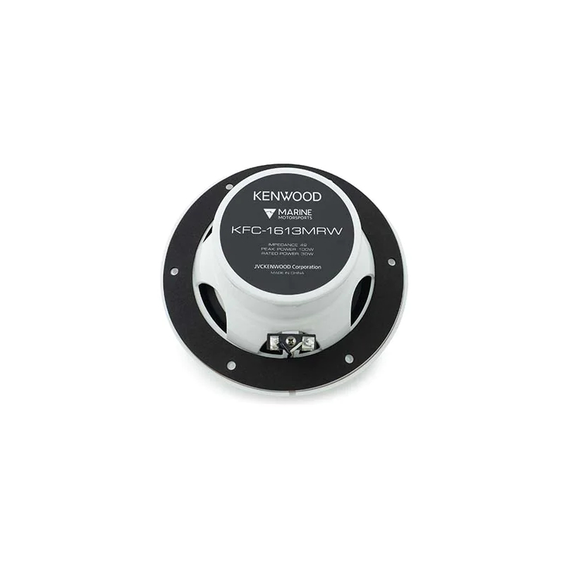 The Kenwood KFC-1613MRW is an 6.5 inch 2-Way Marine Motorsports Speaker sold in pair. With an Impedance of 4 Ohms and 60 Hz - 20 kHz frequency response. It's woofer uses Waterproof Polypropylene Cone, 1-Inch Aluminum Voice Coil, Balanced Dome Tweeter with UV Resistant Grilles.