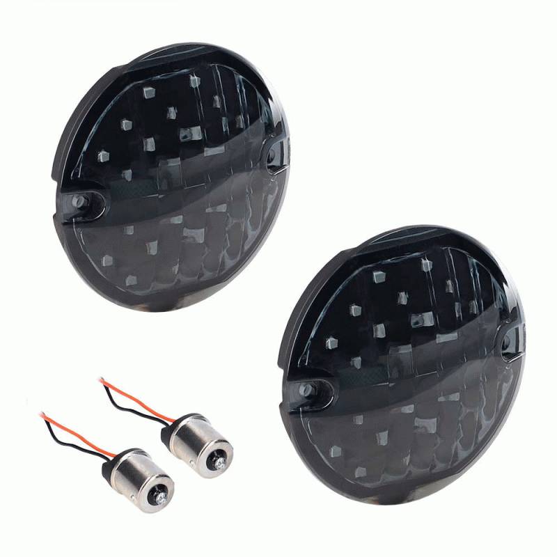 1157 base, Smoke colored domed lens, Fits Harley-Davidson® with 3.25” round lights, (24) 6-watt LEDs @720lm, Direct replacement, no adapter needed, 2013 and earlier may require load equalizer, Sold as 2-pack.