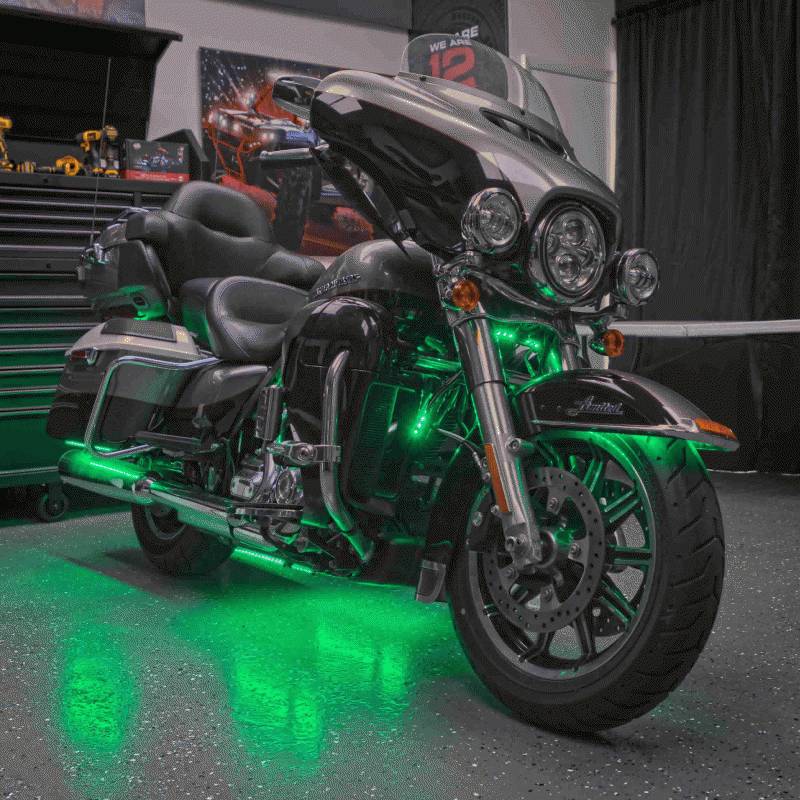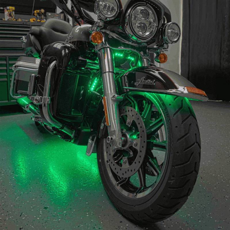 - Pre-wired LED strips for triple tree, front fender, down tubes, gas tank, back engine, lower frame, saddlebags, and Tour Pak®