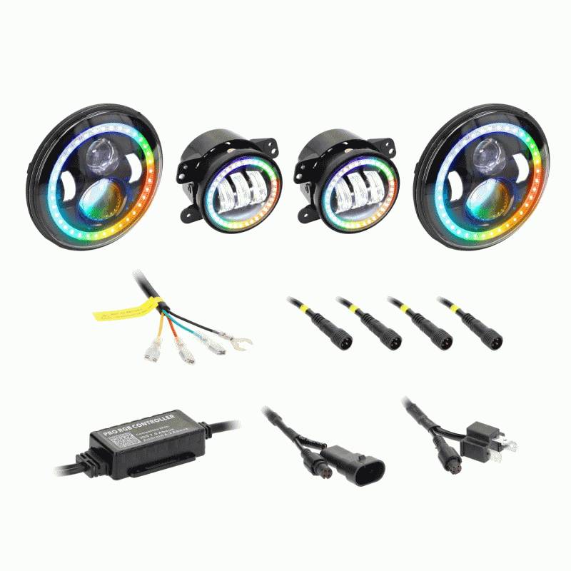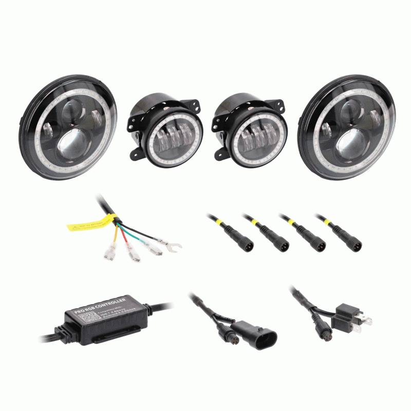 Metra Electronics JP-707RGBKT 7" Chasing LED Halo Headlights and 4" Fog Light Upgrade Kit with LED Controller for Select 2007-2025 Jeep Vehicles