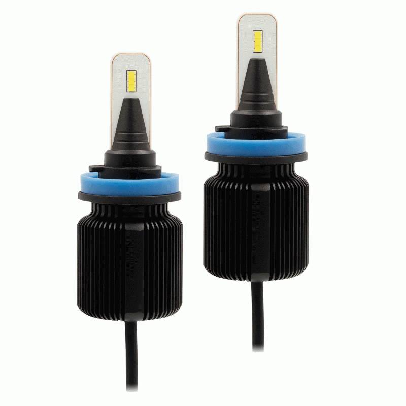 These bright lights are designed to fit into tight spaces with a compact design that does not compromise performance. By engineering a high density fin design, these bulbs stay as cool or even cooler than traditional LED bulbs with bulky heat sinks or messy braid designs. The light output is equally impressive with a total of 6,000 lumens of cool white (6500K) illumination per pair using 20 watts per bulb. Kits are available in the most common headlight sizes.