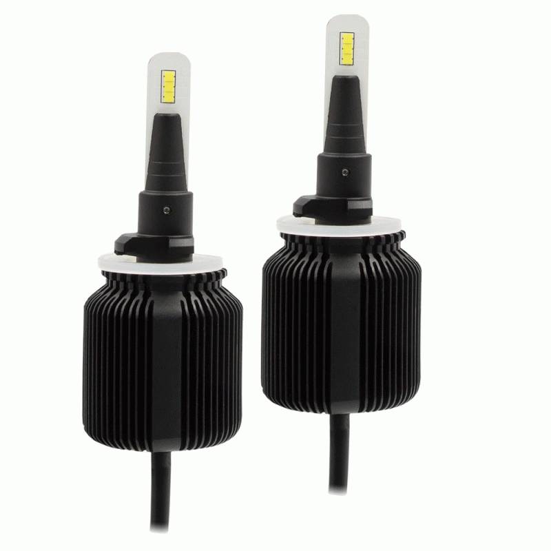 These bright lights are designed to fit into tight spaces with a compact design that does not compromise performance. By engineering a high density fin design, these bulbs stay as cool or even cooler than traditional LED bulbs with bulky heat sinks or messy braid designs. The light output is equally impressive with a total of 6,000 lumens of cool white (6500K) illumination per pair using 20 watts per bulb. Kits are available in the most common headlight sizes.