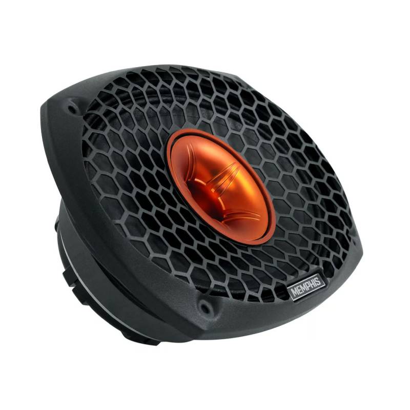 The WTV2 horn tweeter is LED-ready, allowing optional Memphis LED kits for color-changing illumination, ideal for show builds, doors, and party setups. Engineered for pro-audio performance, it delivers clean highs and aggressive output that can be heard even outside the cabin. Built with a heavy-duty motor structure and professional-grade materials, it withstands high-volume use, while included black steel mesh grilles with orange accent rings provide protection and a bold visual style.