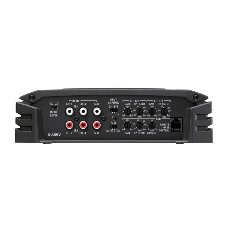 The S2-A55V Amplifier’s versatile 5-channel design makes it the ideal all-in-one solution for powering your entire sound system. It delivers crisp, clear audio to up to four speakers and a dedicated subwoofer channel, giving your vehicle a full and balanced audio upgrade from a single, compact chassis.