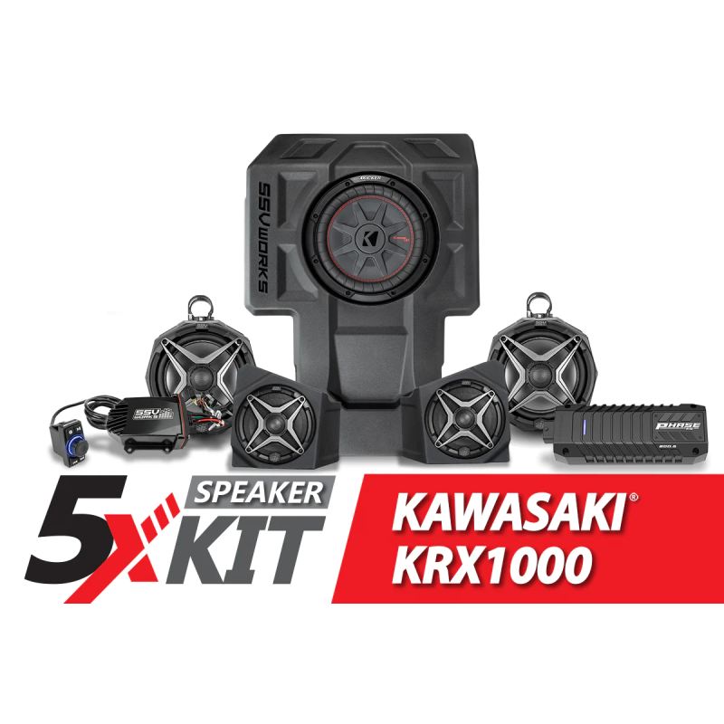 SSV Works KX-Q5xA2 Kawasaki Teryx KRX 2020+ 5 speaker Plug and play kit with SSV Speakers/ 8" speaker pods/ Phase EQ 5ch amp/ MRB2R Controller