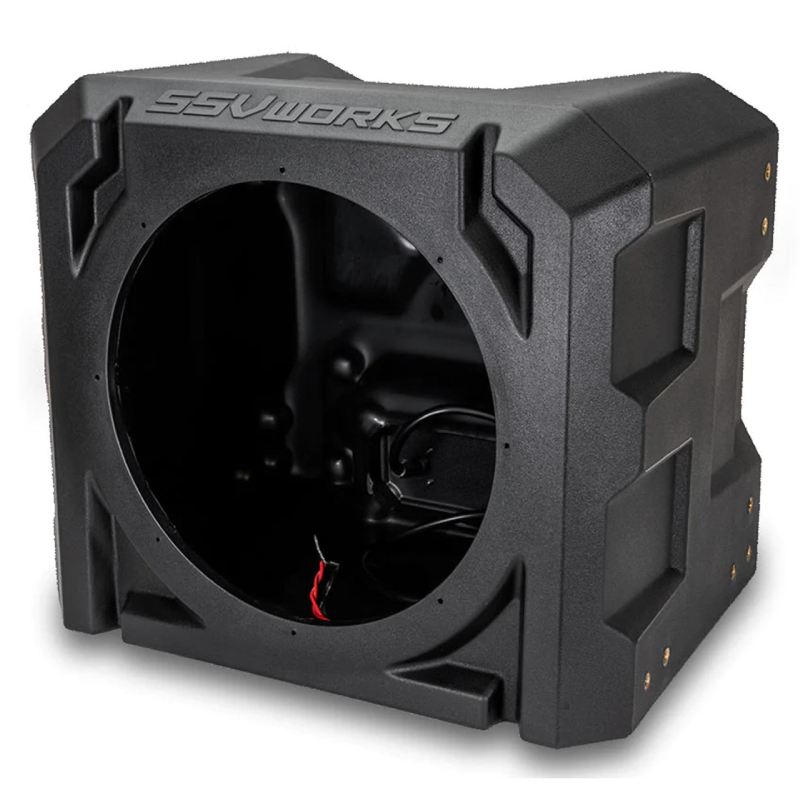 • RG4-UD10U Custom-molded enclosure installs under the front passenger seat and holds a 10” SSV Works subwoofer. Bolt-in installation no cutting and no hassles — connect it to amplifier (sold separately).