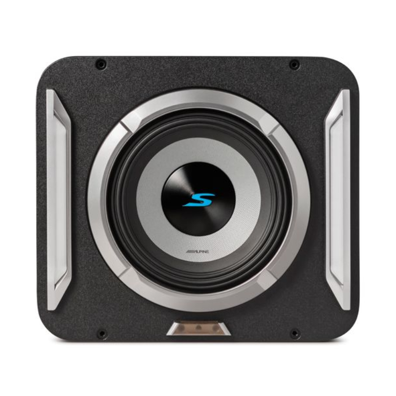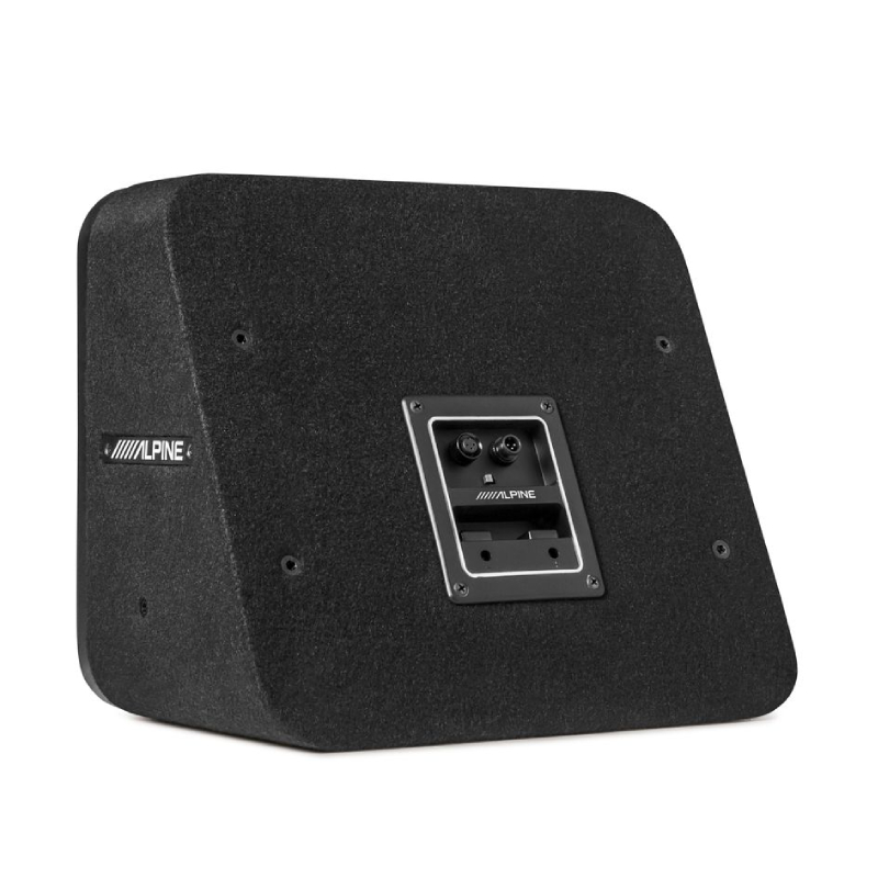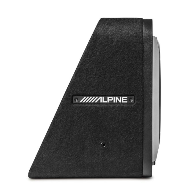 Alpine S-Series S2-SB8 8" preloaded subwoofer wedge enclosure and 300w RMS power its features are multi-link capable, RGBW multi-color trim bar lighting with rf remote, enhanced "punch" and accurate bass, and a carbon fiber/polypropylene subwoofer cone for lightweight construction with high output and low distortion.