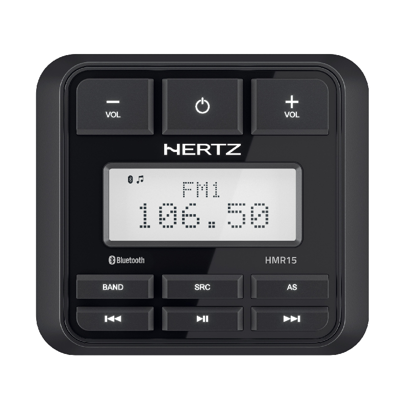 The Hertz HMR 15 source features a minimalist square-shaped design, perfectly in line with the latest trends in the most prestigious navigation instruments. The centrepiece is a generous display with the large marine-grade push button panel symmetrically distributed in the lower and upper parts. Thanks to Bluetooth 5.0 you can stream high-quality audio from your favourite mobile device, maximising open water fun!