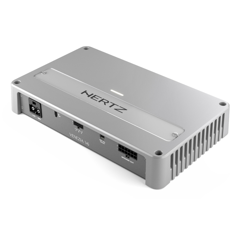 Venezia V6 is the first six-channel Hertz marine amplifier, featuring the impressive power of 160 W x 6 (4Ω), delivering the output levels needed in the marine environment! Hertz Advanced Class D technology maximizes efficiency and power while minimizing heat and electromagnetic radiation - enhancing sound quality that reaches new highs with Hi-Res certification! High-powered channels with bridging capability.