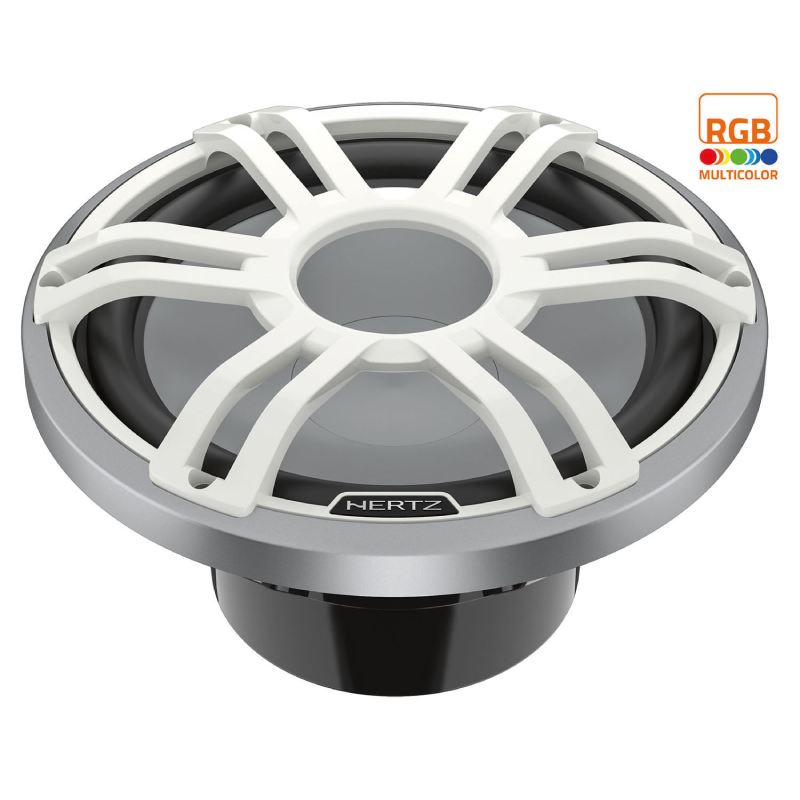 Hertz HMS 10 S4-LD-SW marine subwoofer is available in 2 or 4-ohm single voice coil versions, featuring a stunning 250 W continuous power handling. The new HMS 10 marine sport grille subwoofer is optimized to perform in open baffle applications for deep and punchy bass without the need to build a dedicated enclosure.
