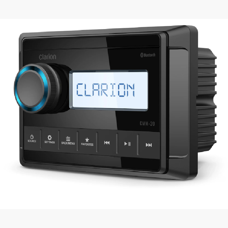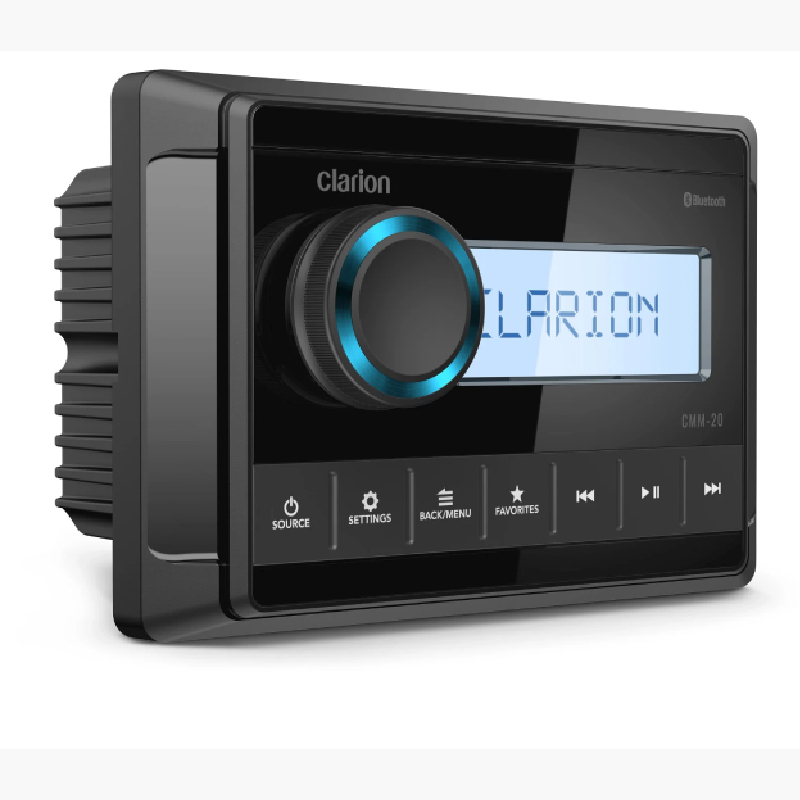 The CMM-20 is a marine-grade audio device tailored for boat and marine vehicle use. It's equipped to play digital media, AM/FM radio, and weather bands, with a high-contrast display for clear visibility. Designed to endure the harsh marine environment, it's resistant to water, moisture, UV rays, corrosion, rust, and other potential damage, making it perfect for marine applications.