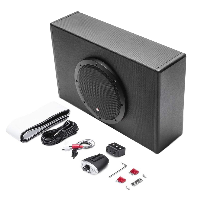 The enclosure can be connected via speaker level inputs for connection to factory systems, or traditional line level inputs for aftermarket systems. It also features an intelligent auto turn-on/off circuit that eliminates the need for a separate turn-on wire. The enclosure itself is precision designed and constructed using MDF (Medium Density Fiberboard) for the best acoustical properties and covered with heat activated vinyl finish to resist marks.
