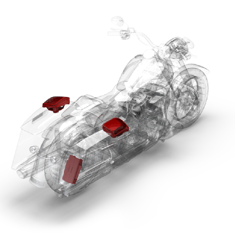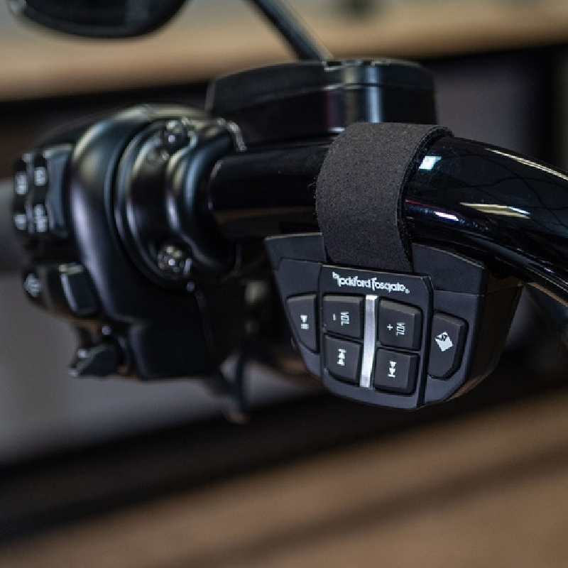 The Power Series TM400X4ad 4-channel amplifier uses Rockford Fosgate's proprietary Class AD technology to draw big power with less current draw from your bike's electrical system. It's made for the road, with conformal-coated circuitry and stainless-steel hardware. This compact amp rocks hard and runs cool, and will be mounted to a plate inside the rear of the bag. You'll install the amp using the plate and the Rockford Fosgate amp kit, which includes everything you need — from the wiring harnesses right down to the screws.