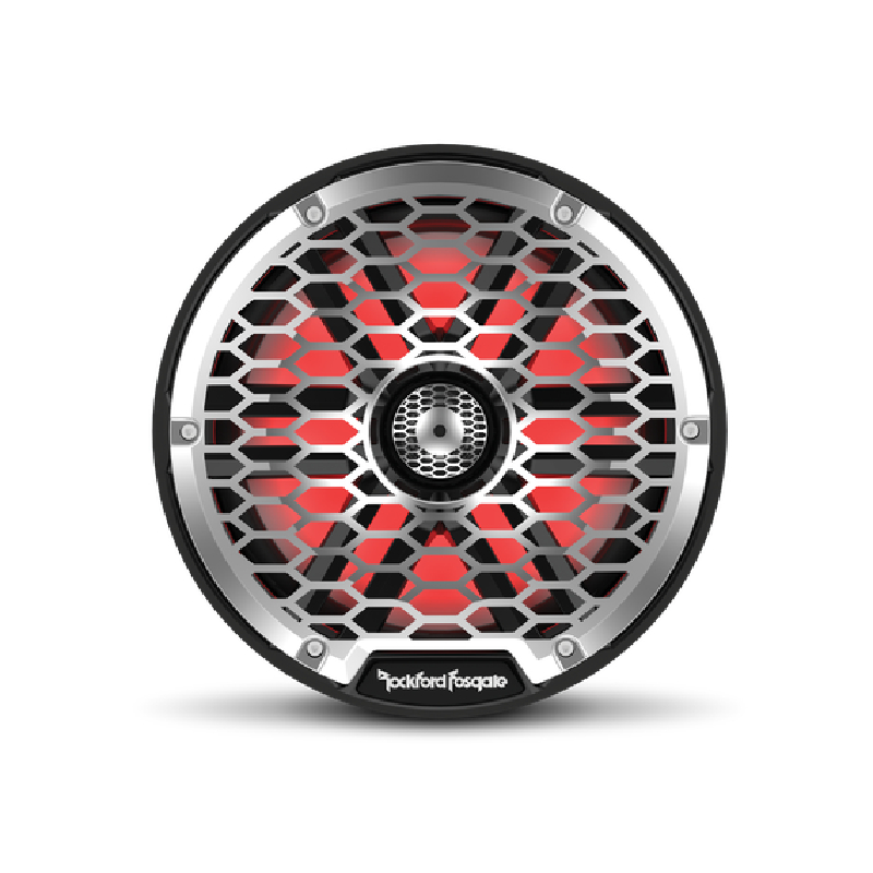 Rockford Fosgate equips this M2 Series 8" Color-Optix™ 2-way marine speaker with a laminated dome tweeter for full-hearted highs and polypropylene woofer for impactful lows. A built-in 12dB/octave crossover network, concealed inside the basket, keeps transitions smooth for a well-rounded, moving sound.