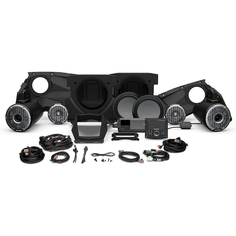 Enhance your ride with the PMX-3 Compact AM/FM/WB Digital Media Receiver with 2.7" LCD, backup cam, and SiriusXM® readiness, paired with the X317-FSE 6.5" Front Color Optix™ Speaker Panels featuring Smart-Lok for select Can-Am® Maverick X3 models, the X317-DK Dash Kit for easy installation, and the X317-M2FWE M2 10" Element Ready™ Loaded Subwoofer Enclosure for deep, powerful sound.