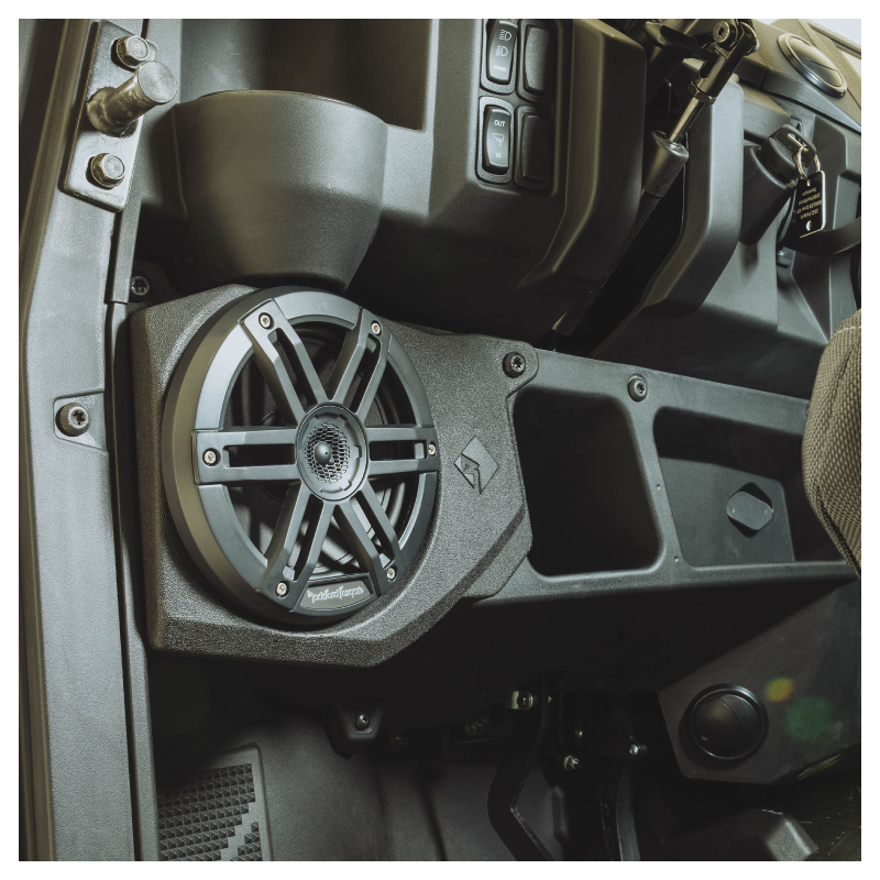 With four 6-1/2" speakers, Rockford Fosgate's Stage 2 Polaris Ranger audio upgrade kit will bring big sound to your outdoor adventures. This rugged, custom-designed combo is tough enough for trail duty, so whether you're racing up a sand dune or blasting through a mud pit, you won't have to worry about your gear getting swamped.