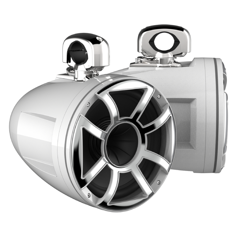 Wet Sounds REV 10 HD-W XS-TC3-S Revolution HD Series 10" 300W RMS (600W Peak Power Handling) 4 Ohms, Horn Loaded Compression Driver (HLCD) Tower Speakers XS-White Grille, and Swivel Clamp for Tube Diameter 1 7/8" up to 3"