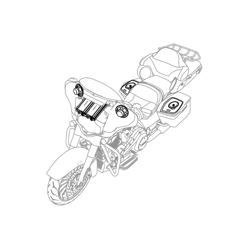 If you're ready to upgrade the sound on your 2014-up Harley-Davidson®, Kenwood has a solution. The Excelon P-HD3FR speaker and amp package features fairing and saddlebag speakers, plus two compact, powerful amplifiers. Designed specifically for select Road Glide and Street Glide models, this kit fits right into your Harley, and no flashing of the factory radio is required.
