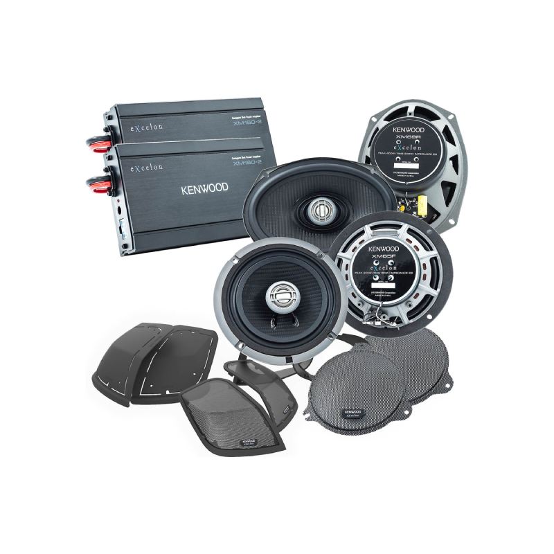 For the saddlebags, there's a pair of Kenwood Excelon 6”x9” XM69R speakers, plus a pair of sharp-looking metal mesh grilles. These powerful speakers feature a sealed design that keeps water from passing through, plus silicone gaskets for extra protection. The package also includes a cut-in kit for the saddlebags.