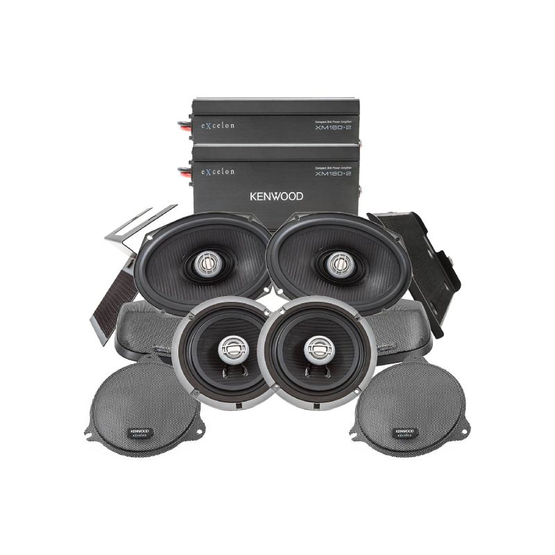 This package includes two 2-channel Kenwood Excelon XM160-2 amplifiers for big-time power. These compact Class D amps are built to handle life on the road, so you'll enjoy excellent performance no matter where your travels take you. These amps are made to rock hard and run cool, even when tucked into a tight space.