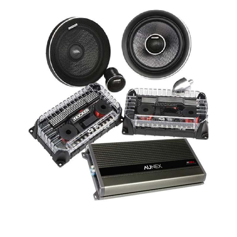 Kicker Q-Class 41QSS654-Bundle includes Kicker Q-Class 41QSS654 6.5" 180W Peak Power 2-Way Convertible Component Speakers + Aunex AP450.4 700W Max Power Class A/B 4-channel Amplifier