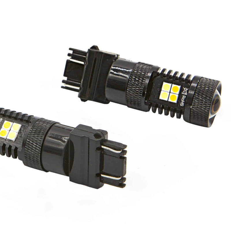 • Use these in replacement of a standard 3157 base bulb on turn signal locations.  The bulb will illuminate white as a marker or daytime running light until you engage your turn signal, and then it will flash amber like the original bulb.