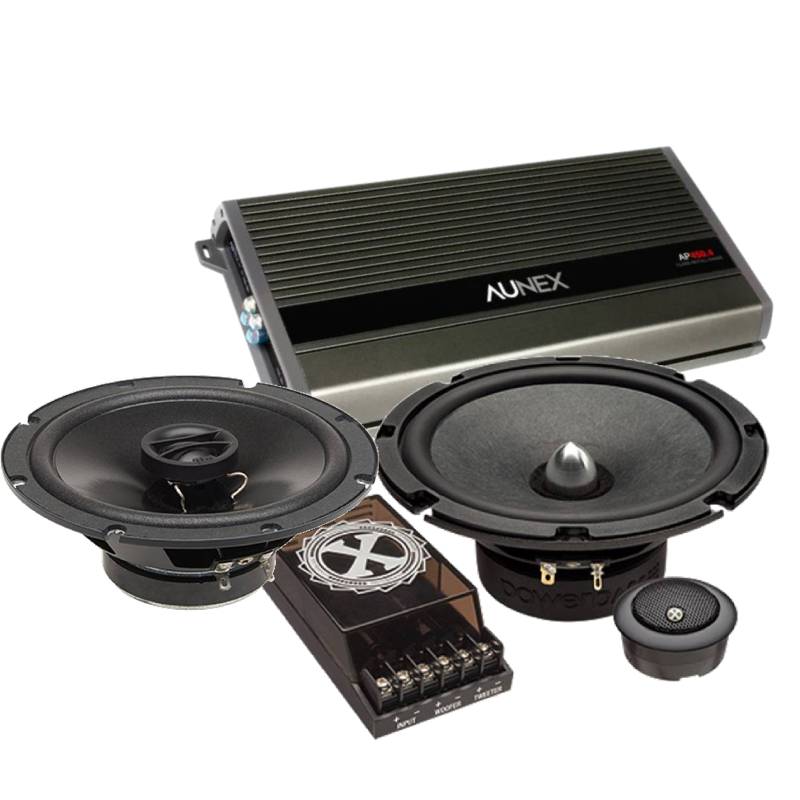 PowerBass 2XL-63C-Bundle includes PowerBass 2XL-63C 6.5" Component Speaker + Aunex AP450.4 4-channel Amplifier + PowerBass S-6502 6.5" 2-Way Coaxial Speakers